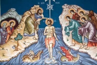 اليومَ وقفَ الربُّ في مجاري الاردنّ، وهتفَ بيوحنَّا: لا تَخَفْ أَن تُعَمِّدَني. فاني اتيتُ لأُخَلِصَ آدَم أَولَ مَنْ جُبِل.